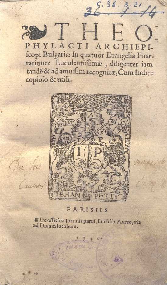 COMMENTARI SUI QUATTRO VANGELI, TEOFILATTO DI OCRIDA.1540