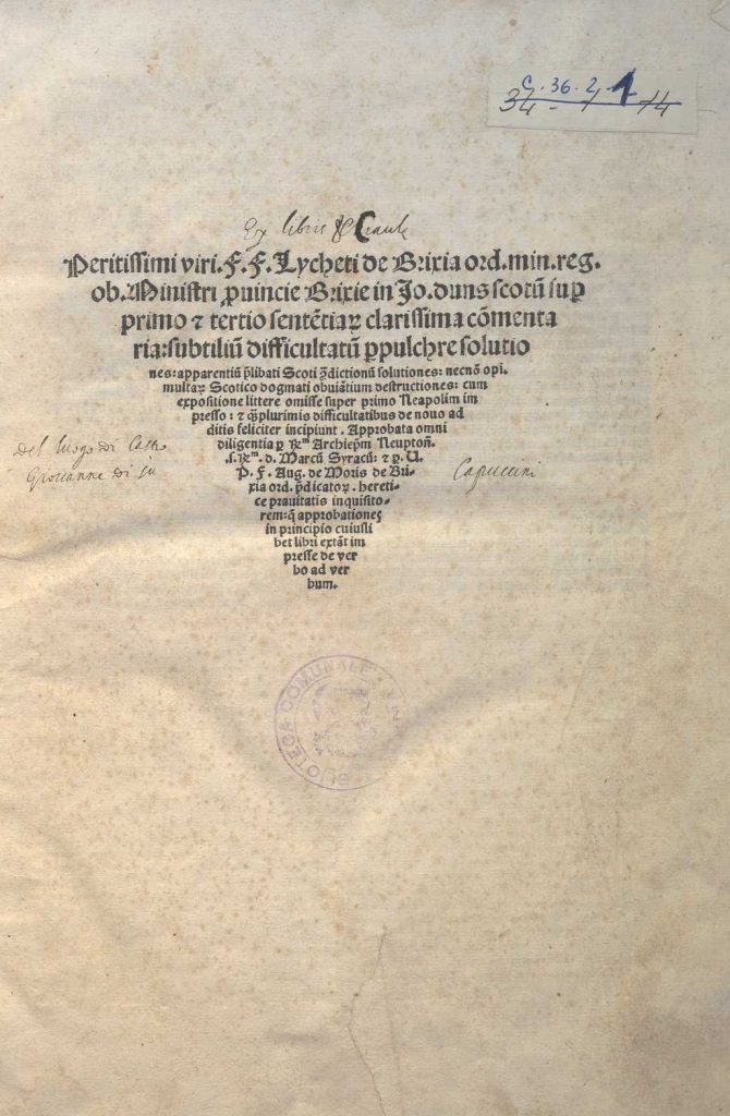 COMMENTARIA FRANCISCUS P. LYCHETUS 1517