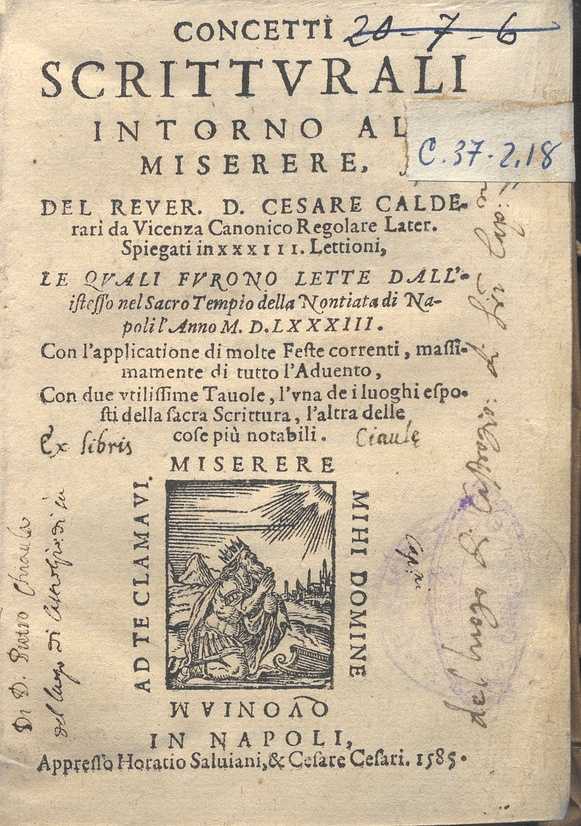 CONCETTI SCRITTURALI INTORNO AL MISERERE DEI DEL REV. D. CESARE CALDERARI. 1583