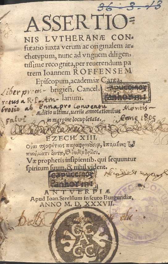 CONFUTATIO ASSERTIONIS LUTHERANAE. JOHN FISHER,VESCOVO DI ROCHESTER. 1537