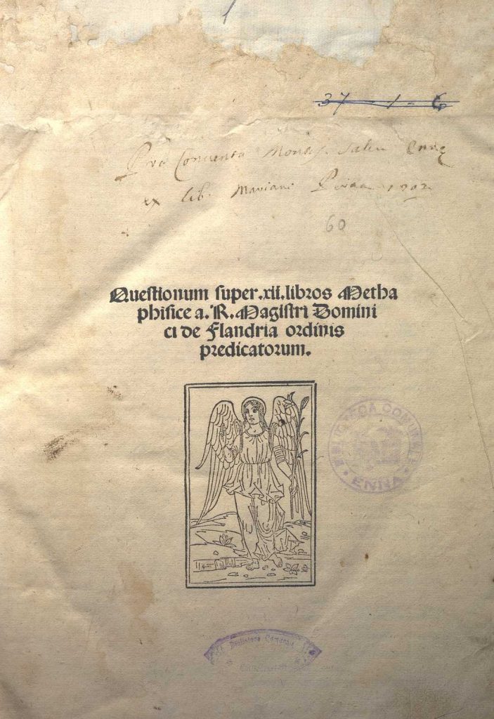DOMENICUS DE FLANDRIA, QUAESTIONES IN COMMENTARIA SANCTI THOMAE SUPER METAPHISICA ARISTOTELIS. VENEZIA 1499
