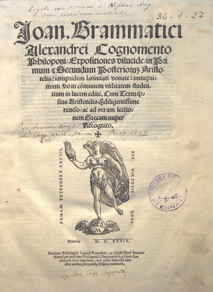 Esposizioni di Filopono sul Primo e Secondo Libro dei Secondi Analitici di Aristotele