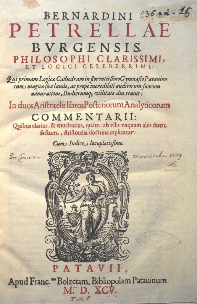 IN DUOS ARISTOTELIS LIBROS POSTERIORUM ANALYTICORUM COMMENTARII, BERNARDINO PETRELLA