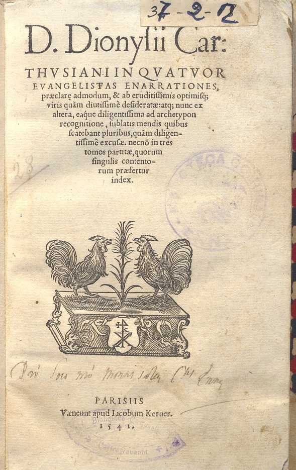 IN QUATTUOR EVANGELISTAS ENARRATIONES. DENIS LE CHARTR. 1541