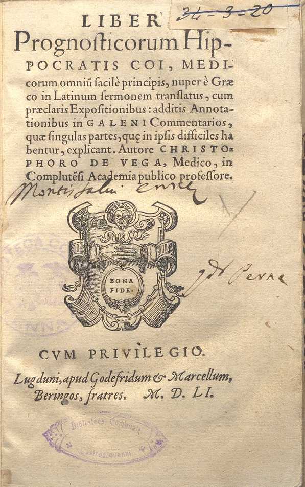 LIBER PROGNOSTICORUM. CH DE VEGA. 1551