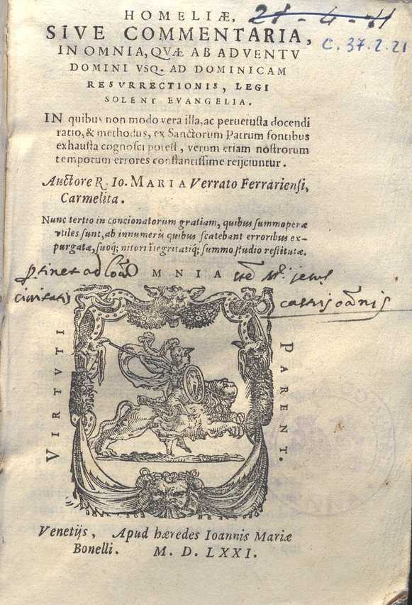 OMELIE E COMMENTARI CHE SI E’ SOLITI LEGGERE DALL’AVVENTO DEL SIGNORE FINO ALLA DOMENICA DI RESURREZIONE.R.L. MARIA VERRATO FERRARIENSI. 1571
