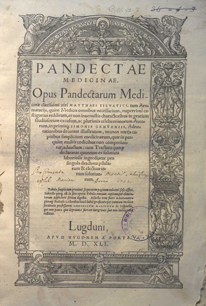 PANDECTAE MEDICINAE, MATTHAEUS SILVATICUS