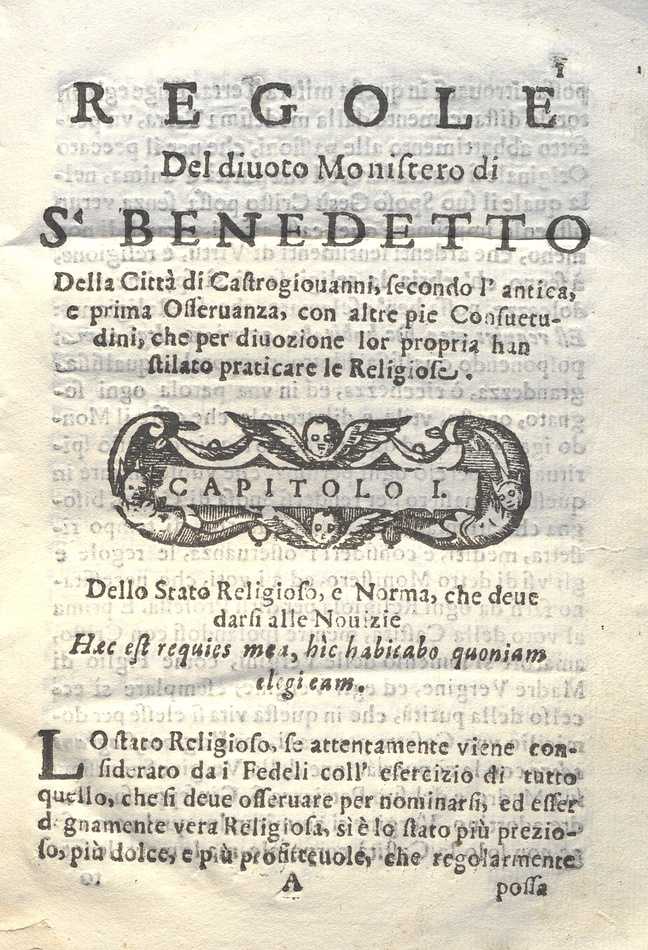 REGOLE DEL DIVOTO MONISTERO. CATANIA, 1712