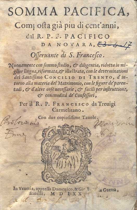 SOMMA PACIFICA. R.P.F. PACIFICO DA NOVARA. 1570
